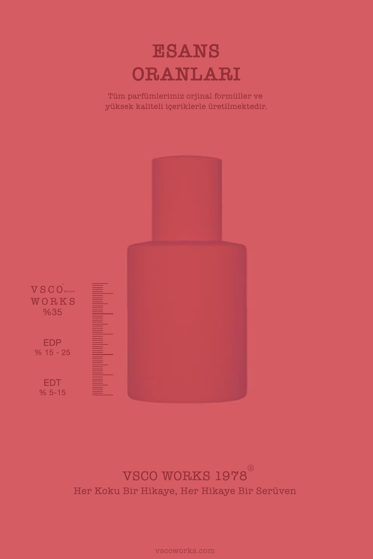 | Ürün Özellikleri | Parfüm içeriklerimiz, orijinal formüller ve 1. kalite içeriklerle hazırlanmaktadır. Her bir şişemizde, özenle seçilmiş 1. Kalite esanslar ve bileşenler ile size etkileyici kokular sunmak için hazırlanmaktadır. |